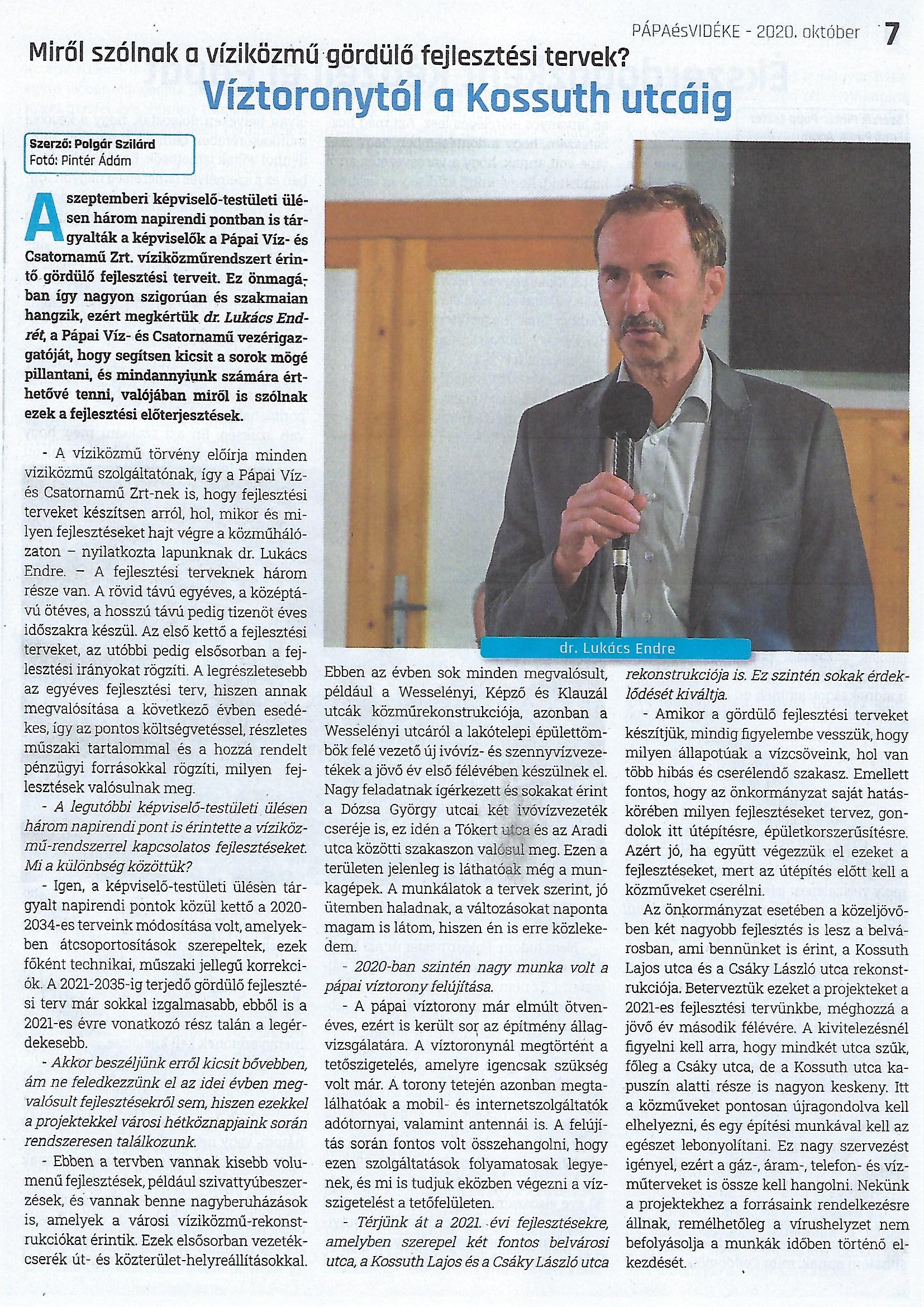 A Pápai Vízmű Zrt. közleménye