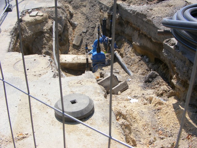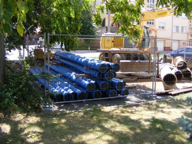A Korvin utca és a Korona utca kereszteződésében hamarosan körforgalom épül. A tervezett körforgalom alatt nem futhatnak vízvezetékek, ezért a Pápai Vízmű beruházásában a régi vezetékek cseréje, áthelyezése volt a feladat. A csövek a körforgalom pályatestén kívülre kerültek. Két nagy átmérőjű vezetéket cseréltek ki: a várost ellátó (víztornyot töltő) 500 milliméter átmérőjű öntöttvas vezeték helyett rugalmas gömbgrafitos csövek és az utca épületeit ellátó azbeszt cement vezeték helyett 150 milliméteres PVC csövek kerültek a földbe. A munkát nehezítette, hogy a nem egészen 100 méteres útszakaszon hat összekötési pont és négy csomópont van. Az építési munkákat már befejezte a kivitelezéssel megbízott Boroszlán Zrt., azonban az átállás a régi, de még üzemelő vezetékről várat magára. Az üzemelő vízvezeték kizárása, az új vezeték használatba vétele a vízszolgáltatás szünetelésével jár majd. A munkálatok befejezését a hőség utáni időre tervezi a Boroszlán Zrt., így elkerülhető, hogy a kánikulában megsokszorozódó vízfogyasztás ideje alatt vízhiányt kell hirdetni. A befejezés várható időpontja 2017. augusztus vége.